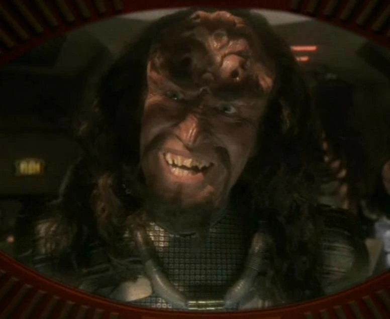 Shortly after, K'Temang was challenged by Gul Dukat, who in disgrace had been relegated command of a small freighter, the Groumall, carrying Major Kira Nerys to the planet. K'Temang scoffed at the threat posed by the freighter and did not bother to cloak his vessel or raise shields. After weapons fire from the Groumall had no effect, K'Temang declined to destroy the ship and headed for Loval.
