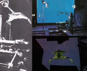 "We used the one Klingon model for the whole sequence–all bluescreen composite combination, except for the opening shot which was a double-pass matte deal. We used two passes on that to get a high-con matte because we couldn't do the roll-over trick and keep the bluescreen behind the model.