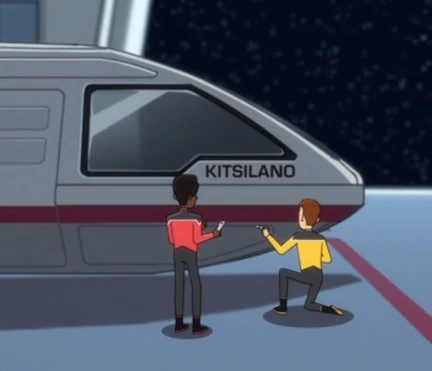 The Kitsilano was a Federation Type 6A shuttlecraft that was in service to Starfleet in the late 24th century, attached to the USS Vancouver. (LD: "Cupid's Errant Arrow")