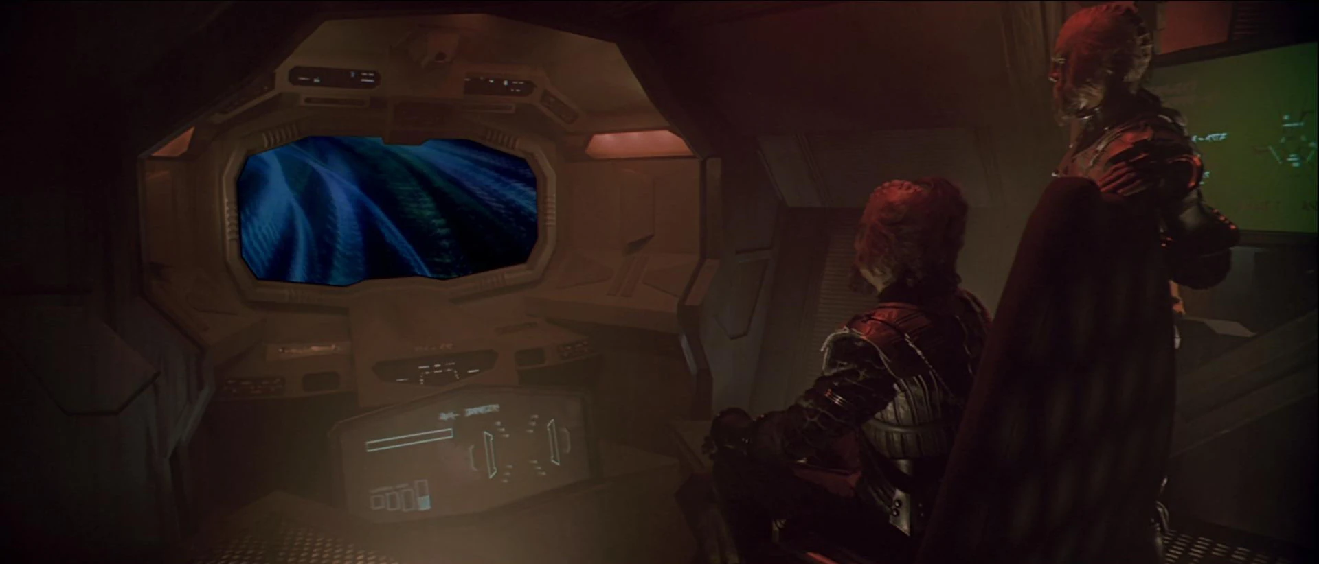 On approach to V'ger, a pair of Klingons watch the entity on the Amar's viewscreen