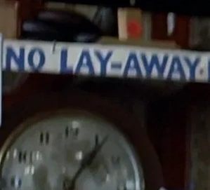One antiques shop in particular in San Francisco called Feinberg's Loan and Pawn had a sign announcing they did not perform lay-away. (Star Trek IV: The Voyage Home)