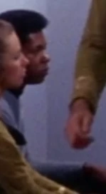 The same unknown actor also appeared as a Starbase 11 bar patron in "Court Martial", wearing lieutenant commander stripes.