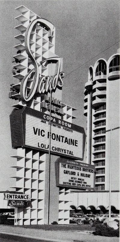A real image of the iconic Sands Hotel sign was included in the Star Trek Encyclopedia, 3rd ed., p. 657, but altered to show Lola Chrystal was performing at the Copa Room.