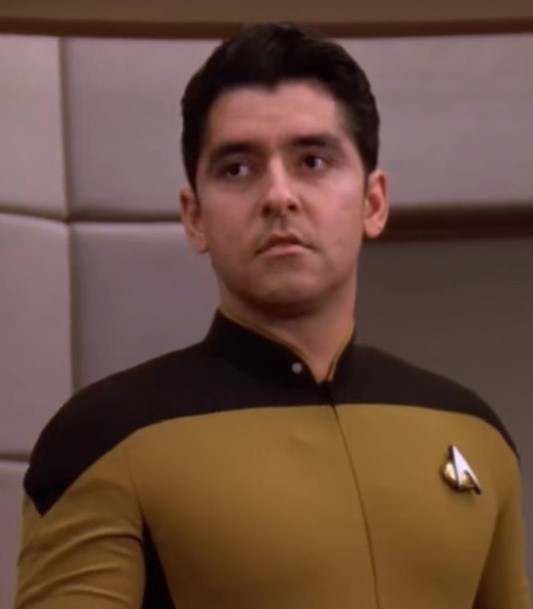Like the rest of the crew, he was affected by the Ktarian game and eyed Wesley Crusher suspiciously when he saw him walking through a corridor without the device. (TNG: "The Game")