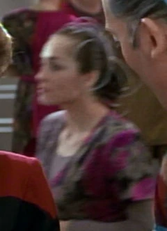 Lynn Meneses (born 8 February 1956; age 69) is an actress who played a Sikarian woman in the Star Trek: Voyager first season episode "Prime Factors". She received no credit for this appearance but was identified by the call sheets of the episode and her costume which was sold off on the It's A Wrap! sale and auction on eBay. [1](X) [2]