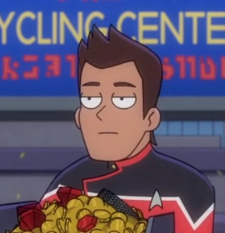 He first came aboard the Cerritos in 2382, following a mission involving a quantum fissure. That same year, he was assisting in dismantling the capitalist system on Targalus IX when he was kidnapped by Targalan elitist terrorists. Mackler, along with fellow captive Ensign Gorm, managed to feign his death by following Brad Boimler's "Bointer" #16 and allowing a tie-dyed coma beetle to bite him. This defused the situation when the elitists believed they had killed the two ensigns and fled. Boimler requested an emergency medical transport for the two, but they wished to return to the "party." (LD: "Dos Cerritos", "Shades of Green")