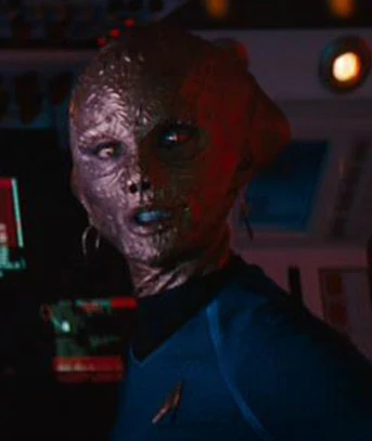 Madeline was an alien Starfleet cadet present at James T. Kirk's disciplinary hearing at Starfleet Academy in 2258. Following a distress call from Vulcan, she was transferred to the USS Enterprise where she served as a science officer on the bridge. (Star Trek)