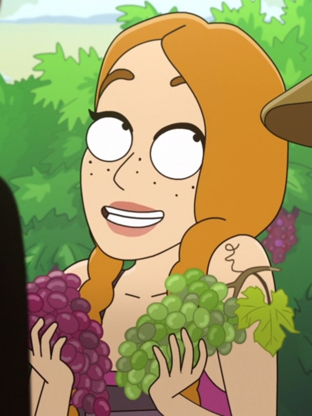 That year, during Beckett Mariner's visit to the vineyard where she attempted to recruit Boimler in assisting her hopes to exonerate her mother, Mandolina approached Boimler and explained, "Bradward, all these varietals are so confusing. Take me to the privacy of the pickery shed and explain them to me." The clearly annoyed Boimler, reproached her advances, stating "Come on, Mandolina, red goes in the red bucket, white in the white, you know that." Disappointed at his rejection, she whimpered as tears welled in her eyes and she walked away. (LD: "Grounded")