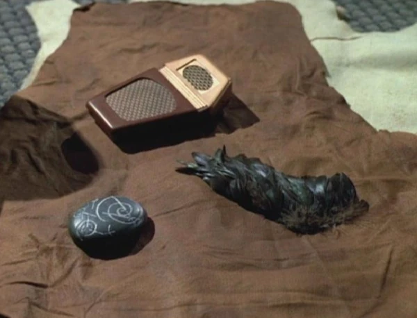 Chakotay's medicine bundle contained a blackbird's wing, a CHAH-mooz-ee river stone, and an akoonah, wrapped in animal skin. (VOY: "The Cloud", "Initiations", "Tattoo", "The Fight")