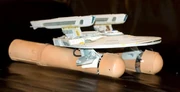 The add-ons for "Cause and Effects" were not permanently affixed, which was just as well as the model was again endowed with different add-ons for its appearance as the USS Saratoga (NCC-31911) in Star Trek: Deep Space Nine's pilot episode "Emissary".