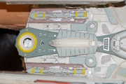 Apart from the different add-ons to the original studio model for it to become the Soyuz-class, Gregory Jein, Inc. also constructed several debris parts as embellishments for the collision scene where the Bozeman collides with the USS Enterprise-D and their subsequent destruction in the episode. One of these, an, out of resin constructed aft warp nacelle fragment (presumably from the port engine, as it was this one which hit the Enterprise-D in "Cause and Effect"), measuring 16 inches, turned up as Lot 333 Lot 333 (X) in the Profiles in History The Ultimate Sci-Fi Auction of 26 April 2003, estimated at $600-$800, actually selling for the low estimate.