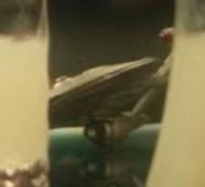 Located mainly on E Deck was the launch bay. The pressurized sector of the bay – limited to E Deck – contained the launch bay control room, while the launch bay itself, on F Deck, was where the two shuttlepods were docked. A magnetic docking arm extended from the launch bay's ceiling to lower or raise a shuttlepod upon arrival or departure of the craft. (ENT: "Broken Bow", "Fight or Flight") An auxiliary launch port was located on the port side of the saucer, which served as an entrance and exit for an inspection pod. (ENT: "Shuttlepod One")