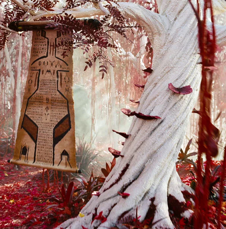 The sacred scroll, hung from a tree courtesy of Captain Kirk