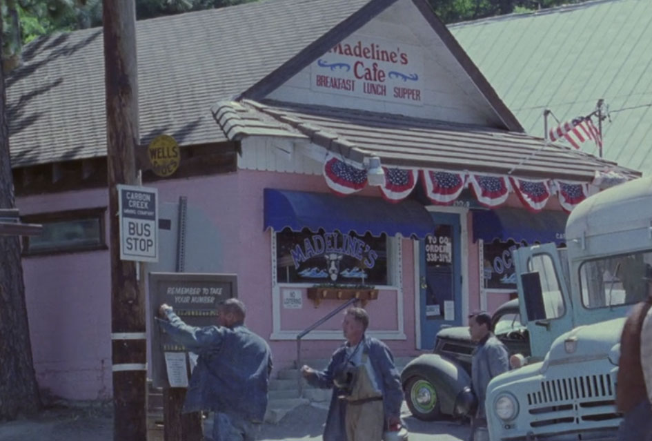 In 1957, a "no loitering" sign hung at Madeline's Cafe in Carbon Creek. (ENT: "Carbon Creek")