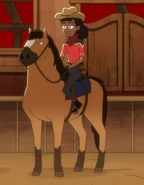 Ensign Beckett Mariner, upon starting the simulation, attempted to enter the local saloon, but was blocked from doing so and had points reducted. She then mounted a horse as intended by the program, only for the animal to buck her off and trample her to death, ending the program in failure.