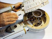 The Olympic-class model has the distinction of being one of the very few studio models that were neither commissioned by the studio nor designed or built by Star Trek's own production team (the Promellian battle cruiser was previously used in a film, while Jaheel's ship may have also been used in an earlier TV show). Save for the name change from George's original designation of the model as the USS Olympic (NCC-58925) to its ultimately used one as the USS Pasteur (NCC-58925) – though its original name would be retained as class designation – virtually no other modifications, aside from the application of three double-snaked medical caduceus symbol decals on the sphere (incorrectly however, as the single-snaked Rod of Asclepius symbol is the appropriate one for medicine), were necessary before shooting the motion control photography of the Olympic-class miniature at Image G. [2].