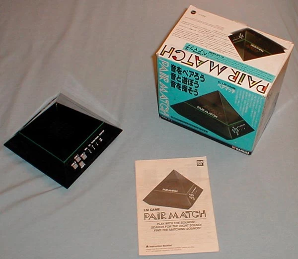 Pair Match is a real game originally produced and marketed in 1984 by Bandai for the Japanese market. The game played like an audio version of Concentration – you need to match pairs of sound effects hidden behind squares on the display.