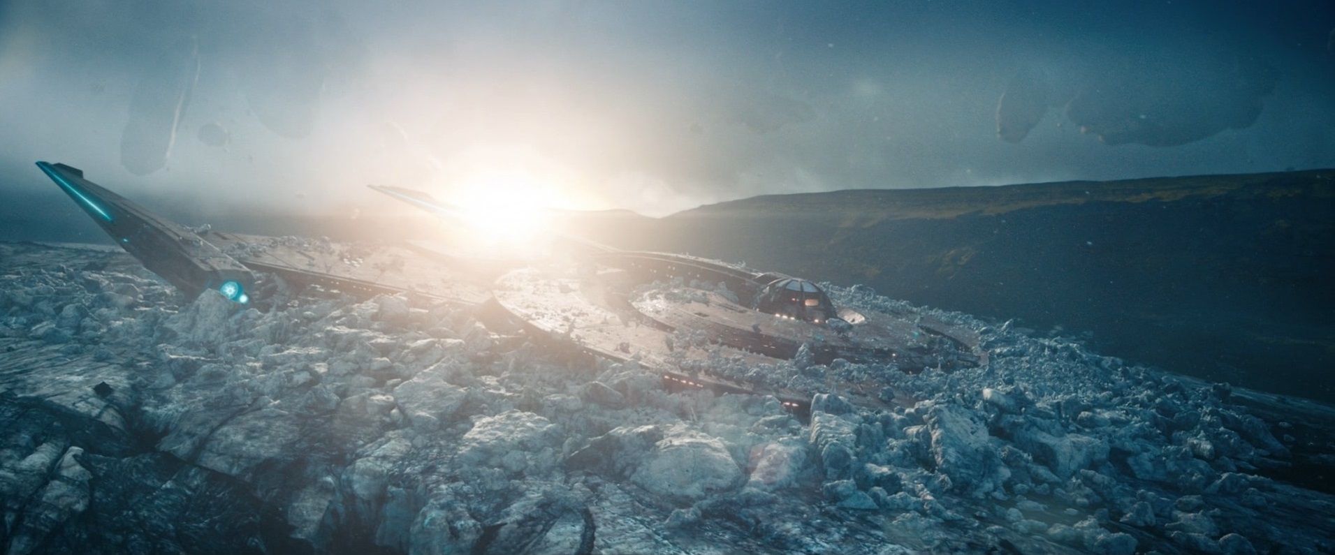 Parasitic ice covering the USS Discovery on The Colony in 3189