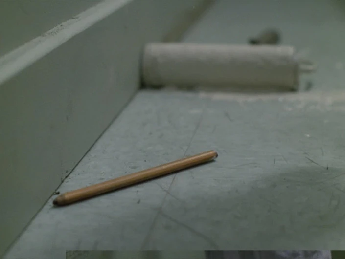 In 2375, while hallucinating he was Benny Russell, Benjamin Sisko wrote with a pencil on the walls of his isolation ward. (DS9: "Shadows and Symbols")