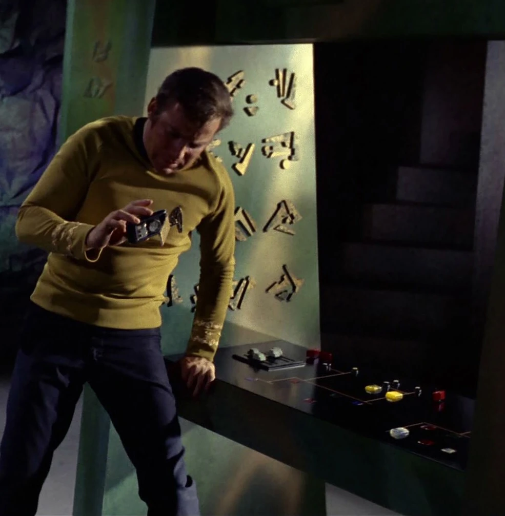 A sliding trapdoor at the base gave access to a cavern-like room full of scientific equipment and more writing. The structure was controlled from a deflector panel similar to those Spock was familiar with, but far more complicated.