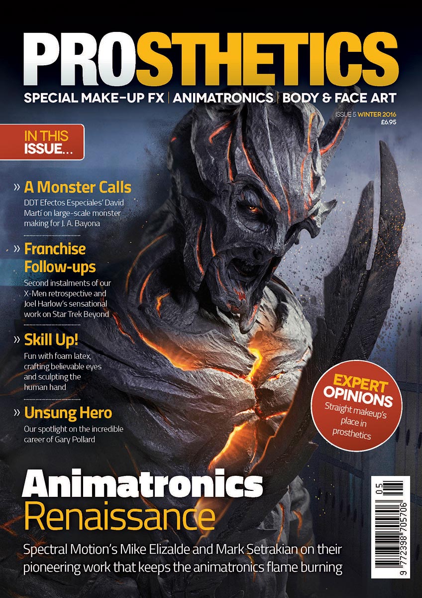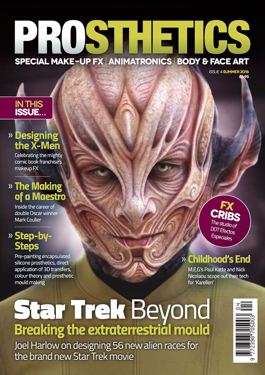Prosthetics is a magazine devoted to prosthetics, special make-up FX, animatronics, and body and face art. Begun in summer 2015, the magazine is published quarterly, by noted make-up FX designer and teacher Neill Gorton. Thus far, it has included two issues focusing on Star Trek, both of them specifically containing an article about Star Trek Beyond.