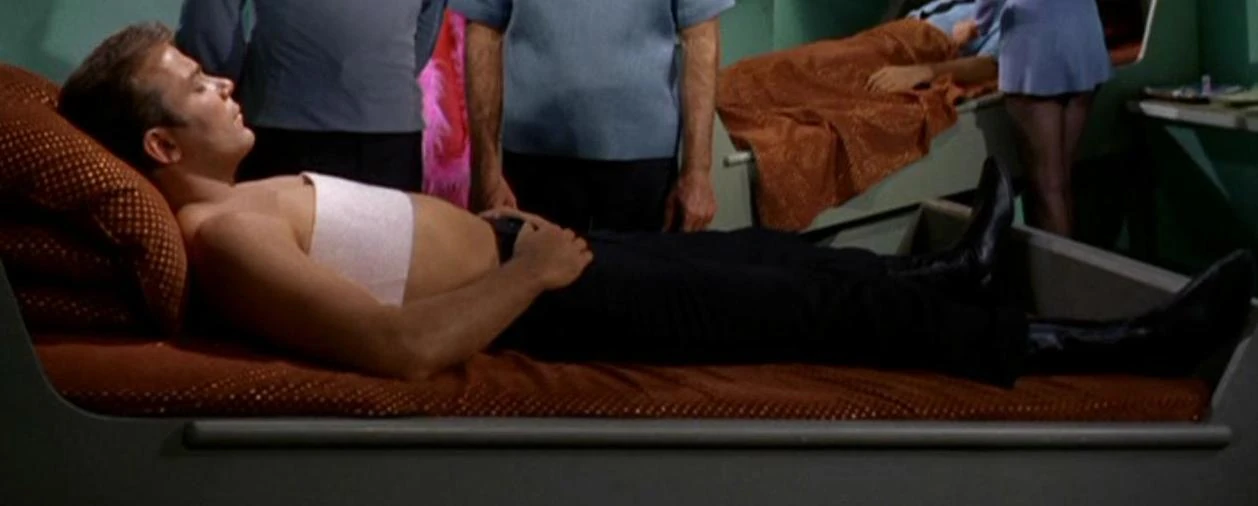 In 2263 of the alternate reality, Spock's iliac region was pierced by debris from a swarm ship, necessitating Doctor Leonard McCoy's surgical intervention. (Star Trek Beyond)