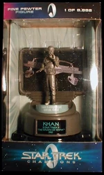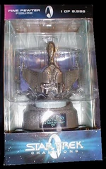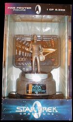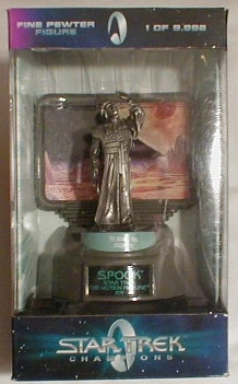 Each pewter model was purported to be part of a limited edition of 9,998 pieces, came complete with Certificate of Authenticity (which optimistically listed it as part of "Series One"), and included a stand. An image of a relevant scene from a Star Trek film was used as a packaging backdrop and a quote was included on the base under the figure.
