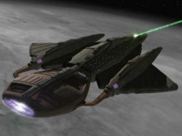 In 2372, this vessel came into conflict with USS Voyager and fired on it while both ships were in orbit of "Planet Hell". The reptohumanoid vessel was in orbit looking for a newborn hatchling on the surface of the planet. Fortunately, Voyager was able to rescue Tom Paris and Neelix from the surface before the reptohumanoid vessel could do more damage to them. (VOY: "Parturition")