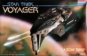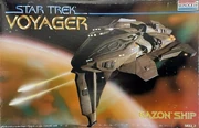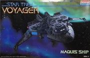 Revell-Monogram produced a limited number of kits while it had the Voyager license, including the USS Voyager itself, a Kazon raider, and the Maquis raider. It also produced a three-piece set containing all of these ships in a smaller scale and an even smaller, pre-painted set of snap-together models of the three.