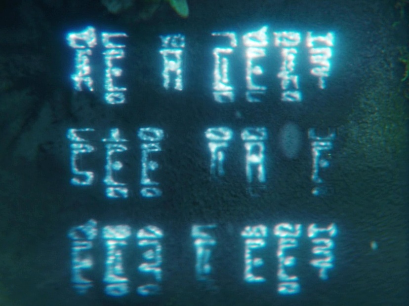 In 3191, Moll and L'ak found the first four verses and, unfamiliar with the nature of a revlav, were misled to Betazed. They destroyed the inscription with phasers to prevent others from reading the clue, but Captains Michael Burnham and Saru were later able to recover them via iridescent bacteria that had settled within the grooves. They also uncovered the fifth verse, which indicated the true solution to be the planet Trill. (DIS: "Under the Twin Moons")