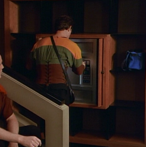 The casino within an altered version of Vic's lounge had a safe. As part of a scheme to return the holoprogram to normal after tripping a jack-in-the-box, Odo and Nog were required to break into the safe to steal the money within. This safe was secured with a combination lock, which Nog planned to break using his sense of hearing. However, it had an auto-relock tumbler designed to prevent just what he was attempting. Despite that, Nog was able to successfuly open the safe and get away with the money. (DS9: "Badda-Bing, Badda-Bang")