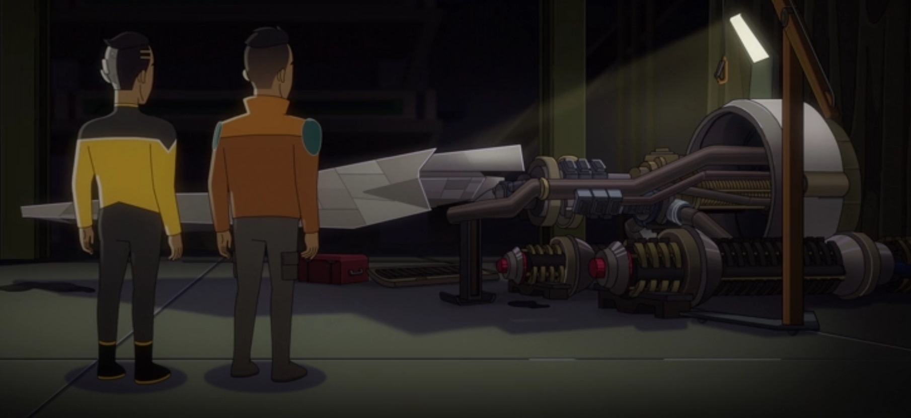 In the mindscape where Rutherford's two personalities competed for control of his body, the younger Rutherford completed the construction of the Sampaguita, which he raced against the older version of himself, who piloted the Delta Flyer with the help of manifestations of Brad Boimler, Beckett Mariner and D'Vana Tendi. The completed ship had Vulcan inverters, quad engines, and was equipped with shields. Ultimately, the Sampaguita was destroyed by a Romulan warbird, but the Delta Flyer beamed the younger Rutherford out and won the race. (LD: "Reflections")