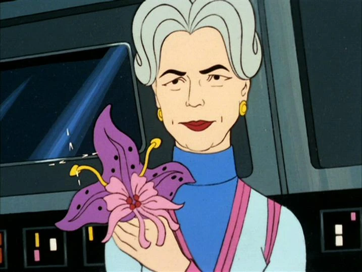 She and her husband were traveling to Babel for the Ambassador-at-Large's retirement party when a ship was flying into the Beta Niobe supernova at warp 36. Upon the Enterprise's entry through the supernova, she was also the first to notice the strange time-reversing properties of the reverse universe; her Capellan flower, which only moments before had been dying, had bloomed anew.
