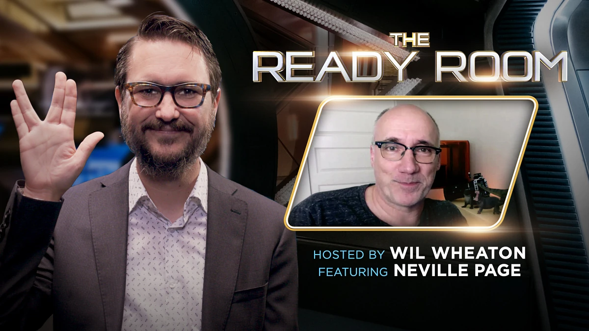 It is the twentieth episode of The Ready Room hosted by Wil Wheaton. The episode's guest was Neville Page, the Concept Designer for Discovery. He discussed his process for creating aliens such as Saru and shared his favorites which were Molly the trance worm and the bioluminescent insect. He also discussed how he designed Linus and Wen's helmet. Later, the Prop Master Mario Moreira is interviewed. He discusses all the new props he made including the hand cannon, tricombadge, and the drill used to put trackers in the neck of prisoners.