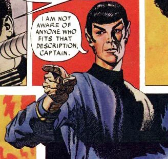 This was a one-page gag consisting only of headshots of a few crewmembers reacting to a joke at Spock's expense. The dialogue is all taken from the end of "The Apple". This page appeared in the Midlands/East Anglia edition of Radio Times for the week of 27 June 1970-3 July 1970.