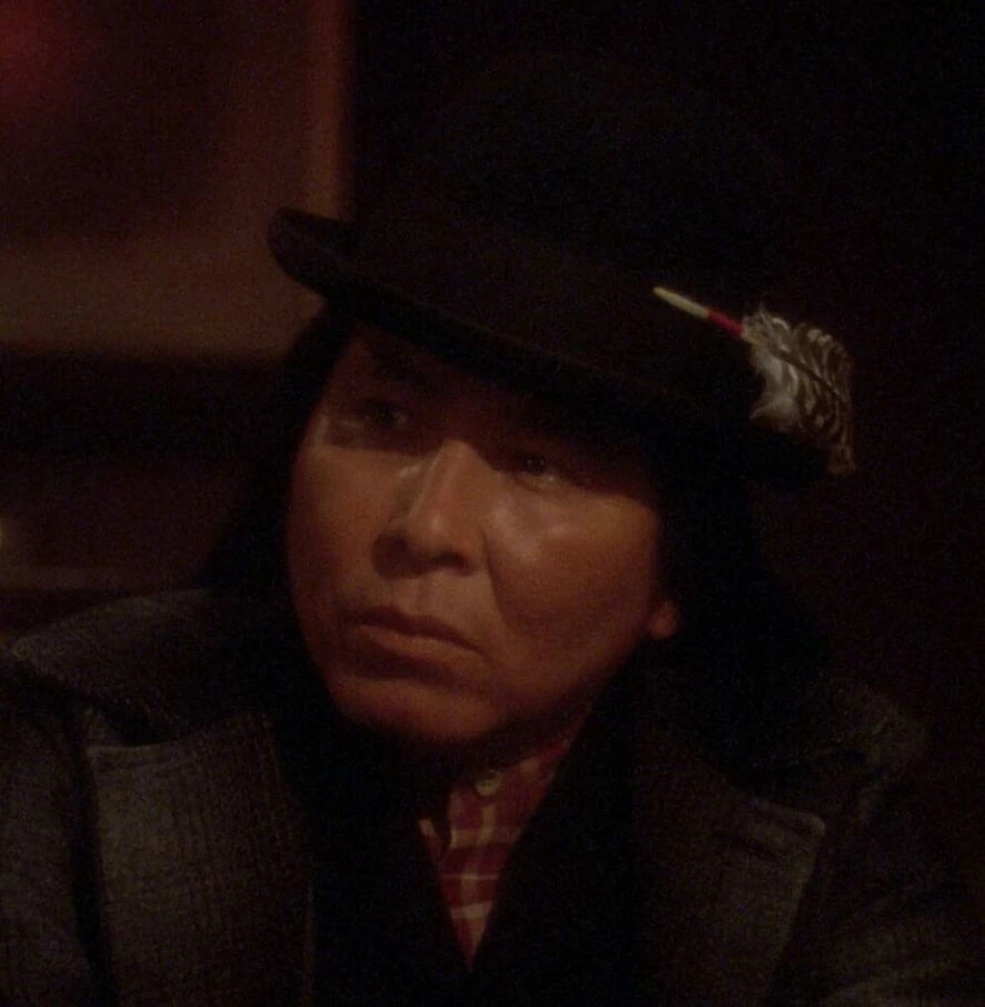 Sheldon Peters Wolfchild (born 14 December 1946; age 78) is the actor who played Joe Falling Hawk in the Star Trek: The Next Generation fifth season episode "Time's Arrow".