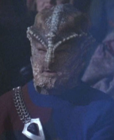 A female member of this species visited the starship USS Voyager when it was docked at a Markonian outpost in 2376. Naomi Wildman pointed her out to Seven of Nine while they were in Voyager's mess hall. (VOY: "Survival Instinct")