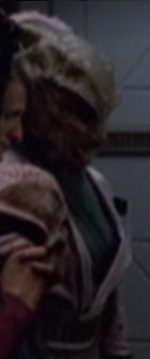 Comparing other scenes, the female in the mess hall can be seen to be a modification of the Voth make-up. This make-up can be seen in both red and green.