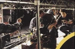 While HGI were finishing up on their panel section models, the preliminary parts from Innovation Arts started to come in, and the company had to turn their attention to the construction of that miniature. Due to the symmetric nature of the design, Innovation Arts only needed to construct one-thirds of each part. HGI followed the same pattern they had used on the large panel sections, fabricating molds and from them cast the parts they needed to construct the eight-foot long model. As a precaution and back-up they actually constructed two of them. Once pulled from the casts, the pieces received a preliminary paint-job, applied by HGI's modelers, among them, Brian Kelly Hahn, Tamara Waters, Forrest Fisher, and Michael Padilla.