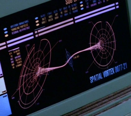 A spatial vortex is a physical passageway linking two points in space, which can allow transit from one point to the other to any vessel passing through.