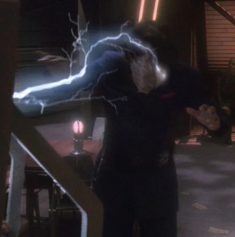 Spiking someone over trying to get a free lunch was considered excessive by some though. In 2374, Miles O'Brien managed to make contact with the Orion Syndicate by spiking Krole when he attempted to bill Municipal Sanitation for his meal. The spiking attempt fused Krole's dataport, which O'Brien, under the alias Connelly, offered to fix. Later, Chadwick complimented O'Brien for being able to make contact quickly, though he thought spiking Krole a risky move. O'Brien agreed, but felt the risk was worth it if it expedited his work on Farius Prime. (DS9: "Honor Among Thieves")