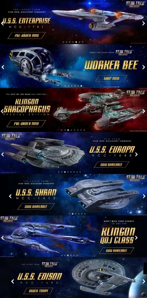 Appearing in promotional materials, six more Klingon starship designs were identified as upcoming models but were in the end not released as issues of this partwork. Regarding the prospective and eventual release of these ships in the Star Trek Universe: The Official Starships Collection followup partwork, Ben Robinson revealed, "The plan is definitely to do more. To be honest, these Klingon ships don’t sell brilliantly so we’ll work our way through the Picard, Disco and SNW ships first. Starfleet and lead ships sell better so are always the priority but with any luck we’ll circle back round."[30]