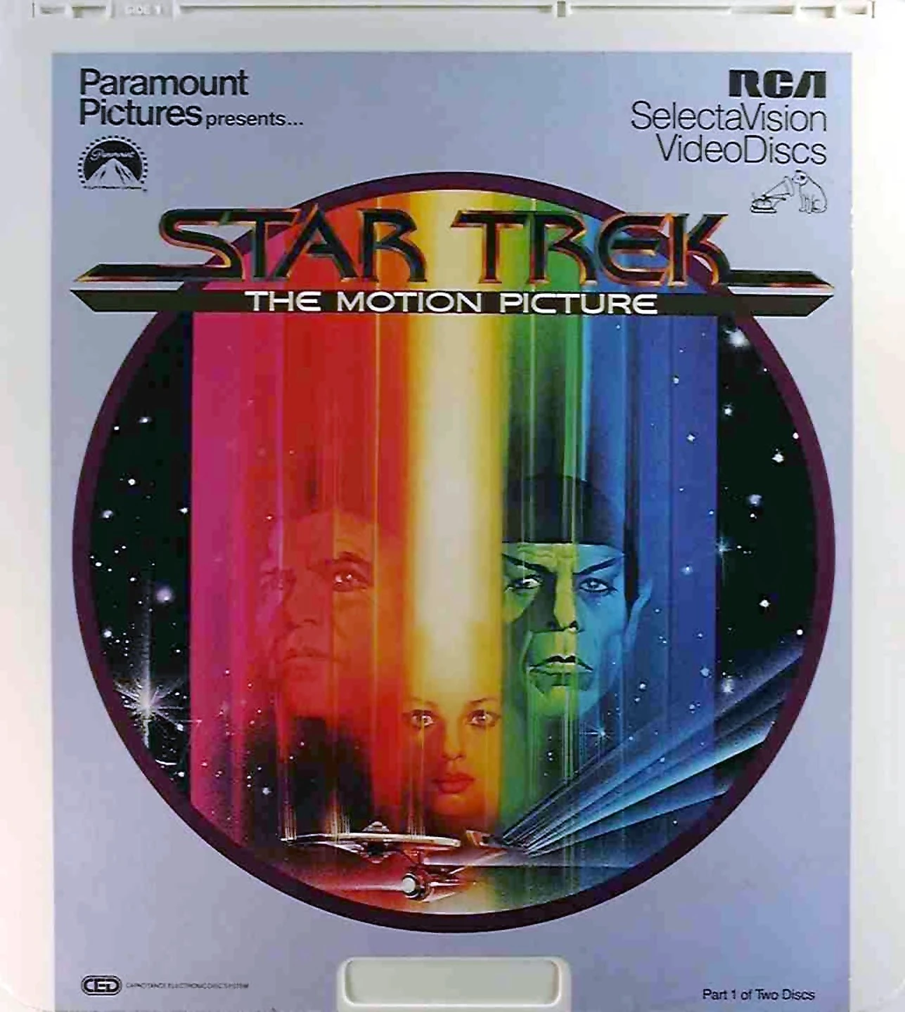 Star Trek: The Motion Picture is the CED release of Star Trek: The Motion Picture. Due to its length, the movie had to be spread over two discs, a bit awkwardly perhaps, as disc 1 ran for 1 hour and 34 minutes, whereas disc 2 only featured the remaining 38 minutes on one side only.