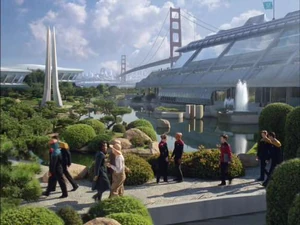 The grounds of Starfleet Academy were across the Golden Gate Bridge from the central hub of Starfleet itself, Starfleet Headquarters. (Star Trek II: The Wrath of Khan)