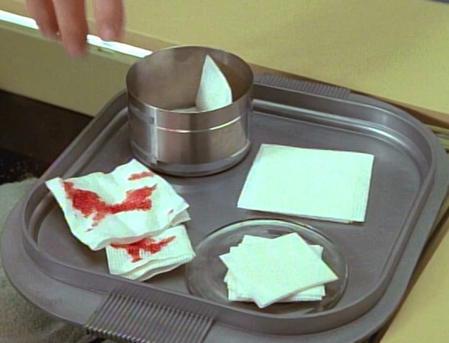The shooting schedule, p. 8, lists cotton and alcohol as props to be used instead of these pads.