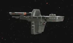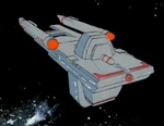 This design originally appeared in the TAS Season 1 episode "More Tribbles, More Troubles", but did not actually appear in the form of a studio model, albeit slightly modified, until the remastered version of "Charlie X". For more information on this model, see main article: Antares type.