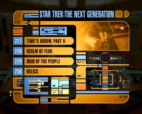- Departmental Briefing Year Six – Ronald D. Moore discusses writing episodes for the sixth season, visual effects producer Dan Curry remembers the challenges of re-creating the Original Series Enterprise bridge for "Relics," and Michael Westmore and James Cromwell discuss make-up design. The parts are titled "Production", "Make Up", "Special Graphics Design", and "Writing". In the section "Profile: Dan Curry", the visual effects producer provides a fascinating tour of his home, containing unique props and weaponry that inspired many of the artistic designs for the series. The featurette also includes a demonstration of the Klingon bat'leth and Tai Chi moves he choreographed for The Next Generation. The featurette "Special Crew Profile: Lt. Cmdr. Data" gives an exclusive profile of Brent Spiner and his android character, Data, which also includes rare footage of Spiner recording Ol' Yellow Eyes Is Back. This featurette is splitted into "Doubling Data", "An Android Sings", and "Acting with Spiner".