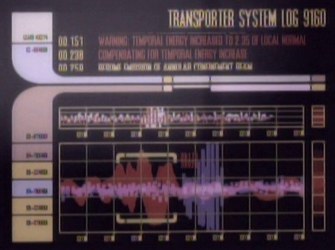 In 2371, a temporal surge caused by an exploding microscopic singularity passing through the Sol system shifted the chronitons lodged in the ablative armor matrix of the USS Defiant into a high state of temporal polarization. This caused a transporter beam passing through the polarized particles carrying Captain Benjamin Sisko, Lieutenant Jadzia Dax, and Doctor Julian Bashir, to be redirected through time, causing them to materialize in San Francisco, the year 2024. (DS9: "Past Tense, Part I")