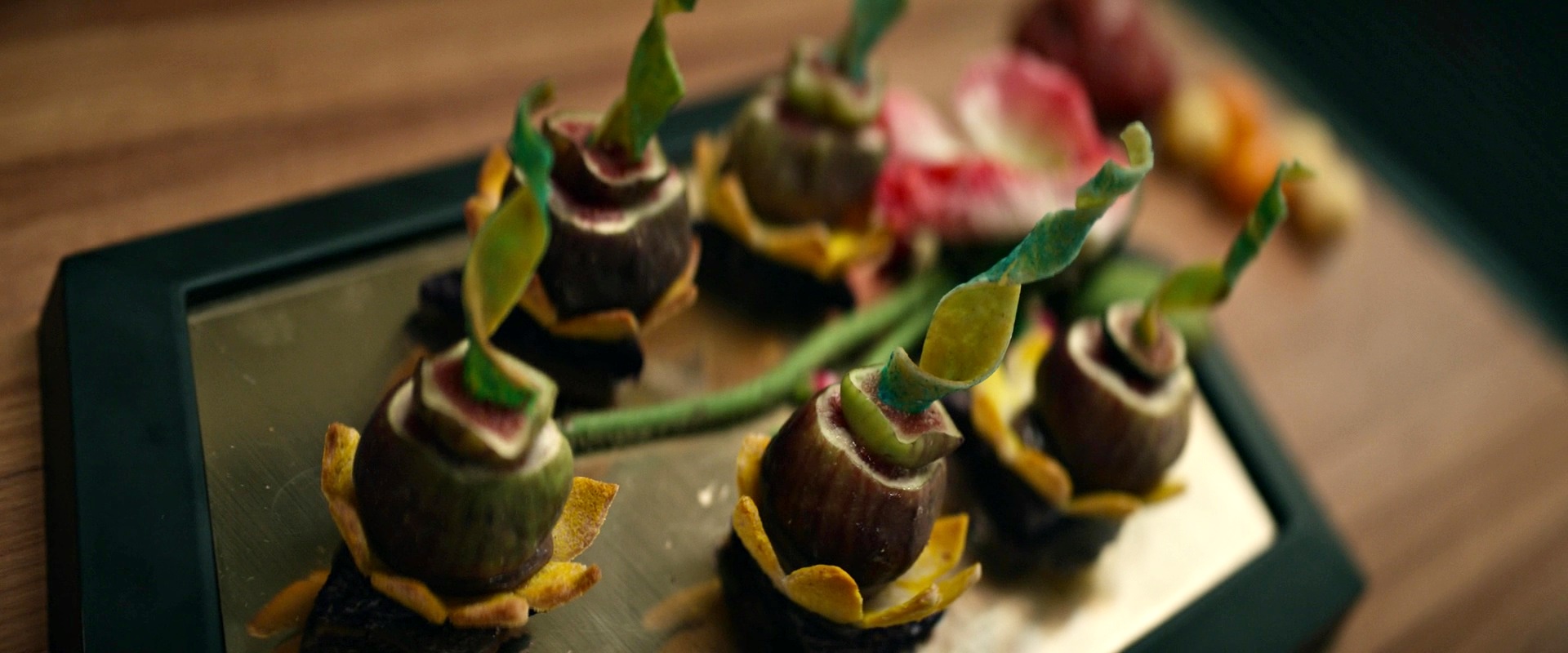 In 2259, Christopher Pike made tevmel for Spock and T'Pring's V'Shal dinner with their parents. Sevet found them delicious, but T'Pril criticized the twist topping as overly elaborate, the halak as not fresh, and the fact that it had been salted. Pike replied that he added salt to slow the fermentation, since the temperature on the USS Enterprise was higher than in a typical Vulcan kitchen. (SNW: "Charades")
