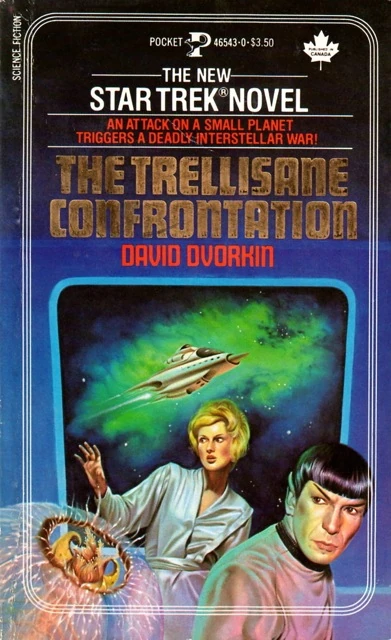 The Trellisane Confrontation is a Pocket TOS novel – #14 in the numbered series – written by David Dvorkin. Published by Pocket Books, it was first released in February 1984.
